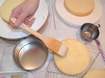 シロップはかなり多く出来ます、調子に乗って塗りすぎないで下さい、あまり多く塗りすぎるとはっきり云って不味い食感が良くないのでした。 ちなみにハケは何でも可なのですが、習字に使っていた筆で代用しないように、ケーキが黒くなります。